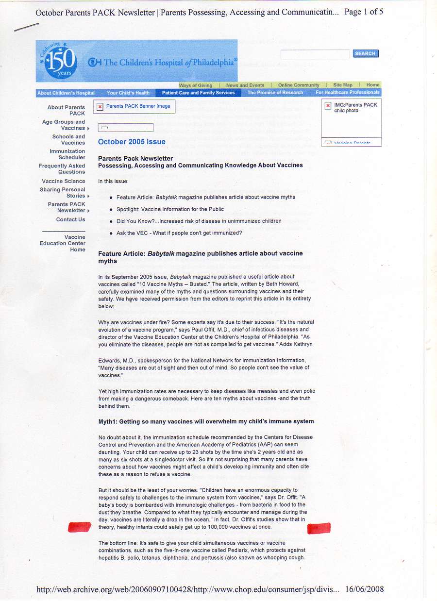 „Bardziej praktycznym sposobem określenia różnorodności odpowiedzi immunologicznej byłoby oszacowanie liczby szczepionek na które dziecko może reagować w jednym czasie… każde niemowlę ma teoretyczną zdolność reagowania na około 10 000 szczepionek w jednym czasie”